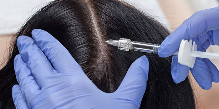 - تزریق فیلر: پزشک متخصص با استفاده از سرنگهای بسیار ظریف، فیلر مو را به ناحیه پوست سر تزریق میکند. این تزریقات در نواحی مختلف پوست سر و در نزدیکی فولیکولها انجام میشود تا مواد مغذی به ریشههای مو برسند و تأثیر بهتری داشته باشند.